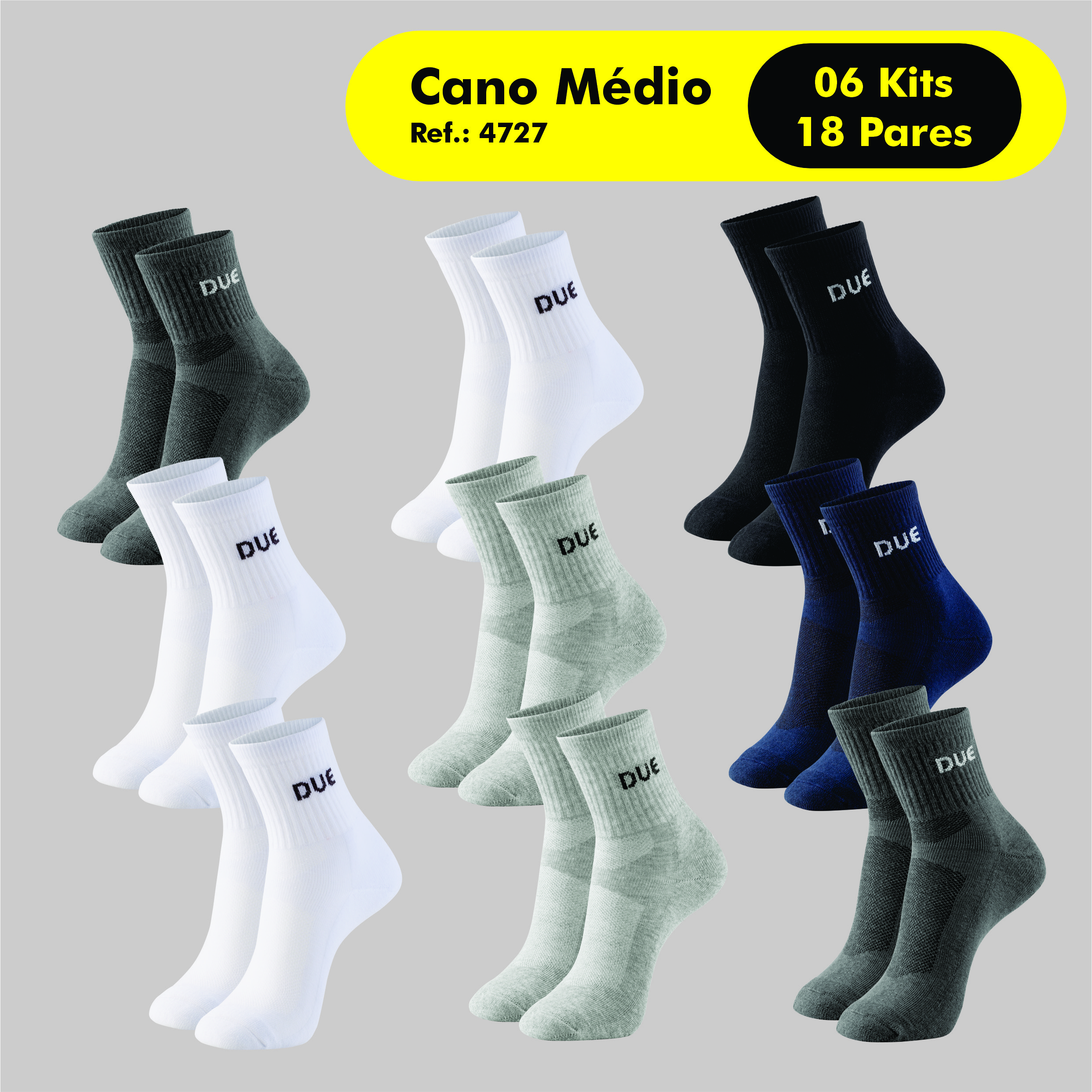 Experimente o conforto inigualável com o Kit de Meias Caneladas Masculinas Due Wear. Com cano médio e cores sortidas, essas meias são perfeitas para qualquer ocasião. Sua composição de alta qualidade, com 57% algodão, 18% poliamida, 12% poliéster e 03% elastano, garante durabilidade, respirabilidade e ajuste perfeito. Eleve seu estilo e conforto com este kit versátil.